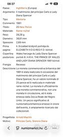Moneta celebrativa per il matrimonio del Principe Carlo con Lady Diana del 1981. Ottimo stato di conservazione. Vedi foto per la descrizione tecnica.
