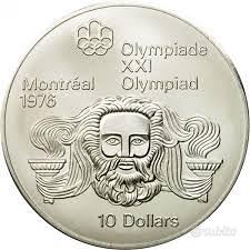 Moneta in argento commemorativa Olimpiadi Canada 1976. La moneta in vendita è protetta da involucro specifico. Mai Usata - per collezionisti