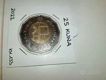 Vendo rara moneta da 25 kuna Croazia 2022 km 133. Ultima prima della coniazione in euro. Condizioni come da fotografie. Vendo a 100 euro. Spedizione a carico dell'acquirente