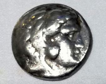 Moneta storica e grande moneta in argento, raffigurante la testa di ERACLE con il copricapo leonino (Lato A) al dritto ZEUS in trono (Lato B)