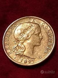 Moneta della Colombia 20 centaus 1897 Arg.0,666 BOGOTA G. 5 la moneta è in uno stato di conservazione BB +/ SPL come si può vedere dalle foto