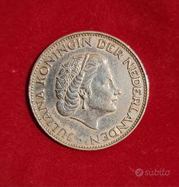 Moneta d'argento 720 olandese regina Giuliana, peso 15 grammi, valore 2 1/2 G anno 1961. Ottime condizioni