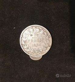 Splendido tagliasigari da tasca del XIX secolo con moneta francese originale da 5 Francs del 1834 raffigurante Luigi Filippo I.