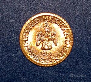 Messico 1865 Moneta placcata in Oro più piccola del Mondo FDC, Imperio Mexicano Maximiliano Emperador.