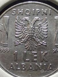 LA MONETA DA 1 LEK DEL 1939 DEL REGNO D'ITALIA E ALBANIA, SI PRESENTA RIGOROSAMENTE AL NATURALE E ASSOLUTAMENTE AUTENTICA.