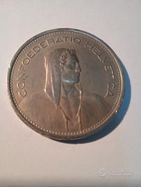 moneta da collezione, da 5 franchi svizzeri del 1968.
