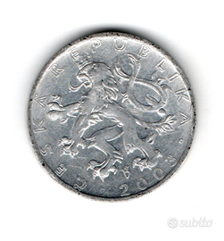 Moneta da 50 Haléřů da collezione La moneta mostrata è un pezzo da 50 Haléřů della Repubblica Ceca ,coniata nel 2003. In circolazione dal 1993 al 2008, anno in cui è stata ritirata dal mercato. Il termine "Haléř" (o heller) indica una frazione della corona ceca (Koruna), dove 100 haléřů equivalgono a 1 corona. Materiale: Alluminio. Il Rovescio Presenta il numero "50" stilizzato con una serie di linee parallele e la lettera "h". Si possono notare anche le iniziali "VO" del designer Vladimír Oppl. Nel Dritto: Raffigura il leone coronato a due code, simbolo della Repubblica Ceca, con l'anno di coniazione in basso. Ha un diametro di 19 mm e uno spessore di circa 1,7 mm. VINTAGE MONETE ANTICHE DI UN CERTO PREGIO E VALORE. CIRCOLATA LA MONETA È QUELLA IN FOTO. Presenta segni di usura, (COME DA FOTO) ma è ottima. Buona per collezionisti e persone amanti delle monete antiche.