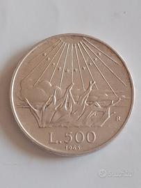 Moneta argento 500 lire Dante Alighieri del 1965 Verginelli