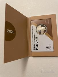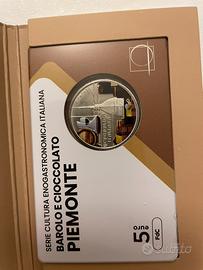 Moneta 5 euro Italia 2025 Piemonte Barolo e Cioccolato