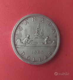 Moneta dollaro Canadese 1965 " canoa " in argento , condizioni come da foto ( ulteriori info e foto ad interessati )