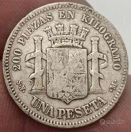 Moneta estera argento Spagna 1 peseta 1870