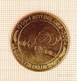 Moneta in metallo dorato commemorativa di Fausto Coppi.