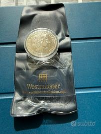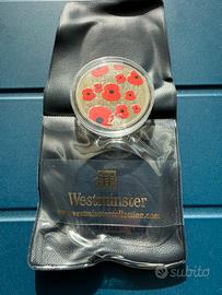 Moneta da £5 Remembrance Day, fior di conio, incapsulata e con fodera vellutata protettiva originale della Westminster collection.