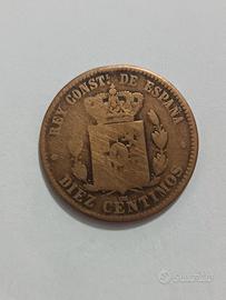 moneta bronzo Spagna Alfonso XII 1878 dieci centesimi