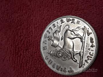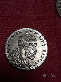 Vendo stupenda moneta in argento . Peso Grammi 14,0375 - Titolo 835 millesimi - Diametro 30 mm - Bordo rigato. Si tratta di un 1 Gersh (mezzo Birr) Etiope del 1888 con rappresentati Busto dell’imperatore Menelik II e Leone coronato porta la croce di Giuda.