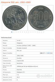 Vendo Moneta del Giappone da 500 yen del governo Hirohito 1982-1989