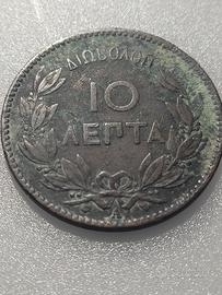 moneta greca da 10 lepta del 1883, con l'effigie di Re Giorgio I.Condizioni come da foto.