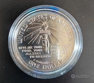 Moneta commemorativa in argento da 1 dollaro, dedicata all'Ellis Island e al centenario 1886-1986.