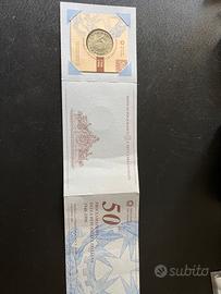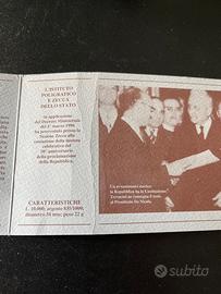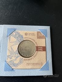 Moneta commemorativa 50 anniversario Repubblica. Ist. Poligrafico e Zecca dello Stato. Argento 835/1000 diametro 34 mm peso 22 grammi.