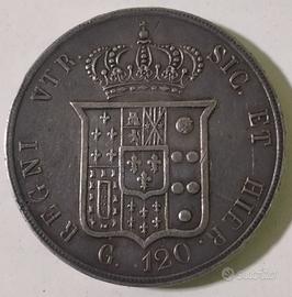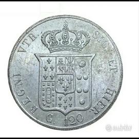 Moneta in argento da 120 Grana chiamata anche Piastra coniata durante il regno di Ferdinando II di Borbone.