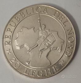 BELLISSIMA moneta in argento 925 dedicata all'Autonomia della Lega Lombarda 1982-1992 con custodia in ecopelle.