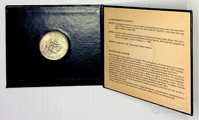 È del 1978 con un valore facciale di 1000 Lire, inserita in un contenitore espositore in pelle e corredata di un libricino di 25 pagine con la descrizione dell’emissione in diverse lingue.