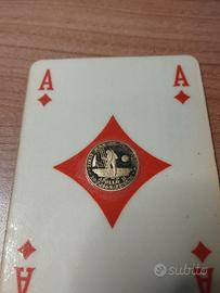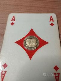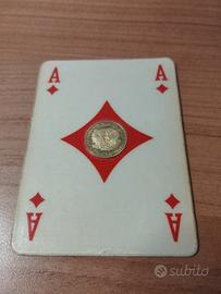 asso di quadri con al centro la moneta d'oro: First man on the Moon apollo 11 , 20-7-1969