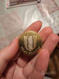 Moneta da collezione, colore dorato vivo, con dei piccoli punti su fronte e retro con leggero scolorimento (vedere ultime due foto).