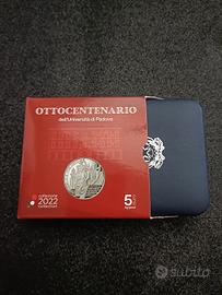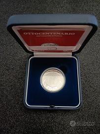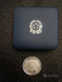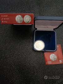 moneta argento 925% valore nominale euro 5 finitura proof. peso gr.18 diametro 32mm. la moneta è nel suo astuccio originale.
