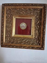 La moneta nell'immagine è un pezzo da20 franchi francesiemesso tra il 1992 e il 2001, nota per la raffigurazione delMont Saint-Michel. È una moneta particolare poiché ètri-metallica, composta da un nucleo e un anello esterno in lega di rame-alluminio-nichel e un anello intermedio in nichel.incorniciata con cornice epoca fine 800