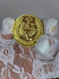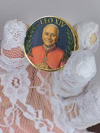Il dritto raffigura il profilo del neoeletto Papa Leone XIV, circondato da corone di ulivo stilizzate , simbolo di pace e saggezza. Sopra la testa del papa si trova l'iscrizione LEO XIV . L' elemento del ritratto colorato conferisce alla medaglia un carattere estetico unico . Sul rovescio, il motivo centrale è una colomba bianca della pace con un ramoscello d'ulivo nel becco, simbolo universale di speranza, riconciliazione e nuovi inizi. La parte superiore reca la parola latina PAX ( Pace con Te), mentre la parte inferiore mostra la data della storica elezione. Non è solo una medaglia commemorativa : è una storia simbolica di cambiamento nella Chiesa, coraggio spirituale e una nuova era di apertura. Una scelta ideale per collezionisti, credenti e amanti della storia del papato moderno . Questa medaglia esclusiva può diventare non solo un ornamento per la vostra collezione, ma anche un regalo unico dal profondo significato