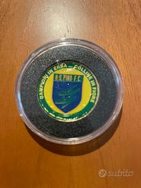 Moneta 500 lire Caravelle in argento e placcata oro 24kt con certificato Bolaffi, per la societa A.S. Pino F.C. In occasione della vittoria dei campioni in erba delle colline in fiore.