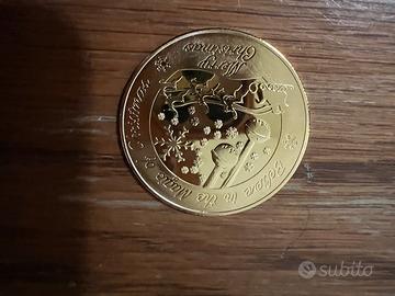 Moneta Santa Claus Merry Christmas Nuovo con la sua scatola In metallo Colore Gold