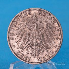 MONETA PRUSSIA IMPERO TEDESCO 3 MARCHI 1908 - GUGLIELMO II
