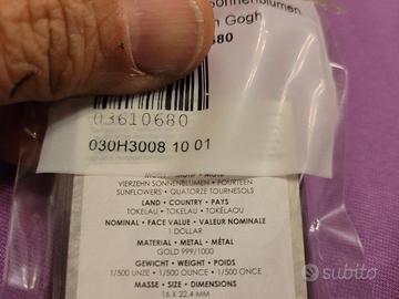 Vendo moneta colorata da 1 dollaro in oro 999/1000 peso 06 grammi circa del pittore Van Gogh.Ancora nel suo imballo saldato.Mai aperta