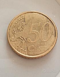 Moneta usata da 50 centesimi di euro di Cipro raffigurante la nave Kyrenia, con le scritte greca e turca e l'anno 2008.