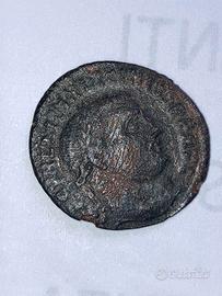 Moneta in bronzo databile tra il IV e V secolo D.C. , diametro circa 2 cm