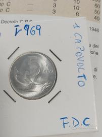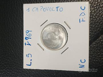Cedo da collezione privata moneta (NC) dal valore facciale di L.5 (data capovolta ) del 1969 (Repubblica italiana 1946-2001) con conservazione come da foto (qFDC) e con patina originale mai pulita prima! Vendo per cessata collezione e avendo tante altre monete (repubblica,regno,impero,estere) non esitare a contattarmi anche solo per info. Valuto ed attendo proposte!