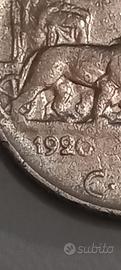 Moneta storica da 50 Centesimi 'Leoni' del 1920