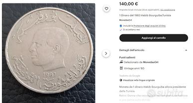 Moneta 1983 presidente Habib Bourguiba valore 140