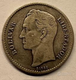 Moneta originale in argento del Venezuela, anno 1935, con ritratto del Libertador Simón Bolívar. Questa moneta da 1 Bolívares è composta da 90% argento (Lei 900) e pesa ca.5 grammi. Classificata nella scala anglossassone SHELDON in stato VF – Very Fine (Molto Buono), presenta buoni dettagli visibili, con moderata usura da circolazione.