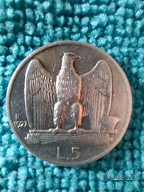 Moneta Vittorio Emanuele III 5 lire 1927 Spedizione in tutta Italia