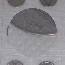 Presenti 95 pezzi di moneta da 10 lire ( 67 monete del 1955 e 28 del 1956 )