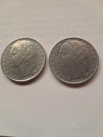 Vendo due monete da lire 100 della serie "Minerva", anno 1956. Monete circolate ma ben conservate. No restituizione.