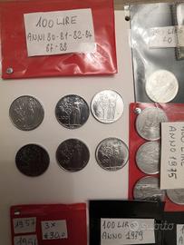 Lire100 altri anni a 1Euro a moneta si presentano tutte in buonissimo stato e ne sono 26 più 3 da 10 euro. Se siete interessati ad altre monete ne ho tante sia lire che regno d 'Italia, anche tante straniere di tanti paesi. No spedizione.
