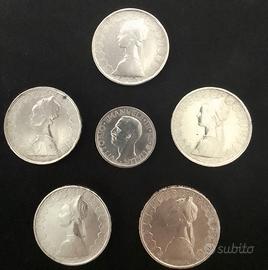 5 monete da 500 lire argento piu' 1 moneta da 5 lire sempre argento. Le 500 lire sono del 1958- 1959-1960-1961-1964. le 5 lire del 1928. Grazie