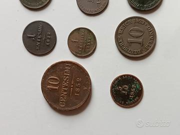 lotto di 10 monete antiche metà ottocento di Napoleone e austriache del regno d'Italia