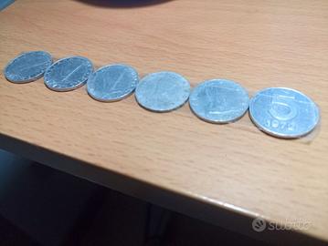 Vendo monete antiche da 5 Lire, 6pz totali. 1 pz da 5 lire Rinascente citta' mercato del 1972, 3 pz dal 1953 al 1955, 1 pz del 1967, 1 pz del 1975. Originali, non puliti o lucidati. non vendo singolarmente ,solo in blocco. La vendita è seguita solo dal servizio "Subito". Grazie