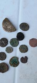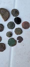 lotto di 17 monete romane,vedi cui un " mezzo sesterzio e un asse ( quelle più grandi) ,il resto sono bronzei ,piccoli ma carini, 1,50 l'una,ottimi per studio e catalogazione