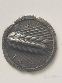 Si tratta di un nomos (statere) incuso di Metaponto, coniato in argento nell'antica Grecia (Magna Grecia).